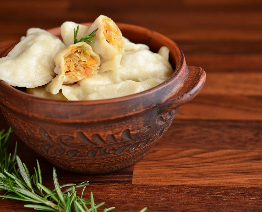 Frozen Pierogy with Cabbage and White Mushrooms