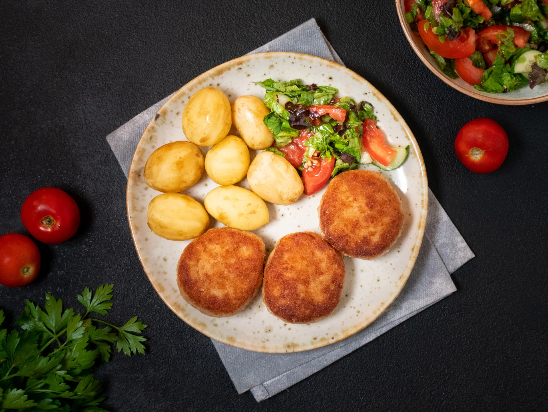 Traditional, flavorful cutlets made with a blend of chicken and deboned pork, pork lard, and onion, coated in breadcrumbs. Excellent for frying or baking.