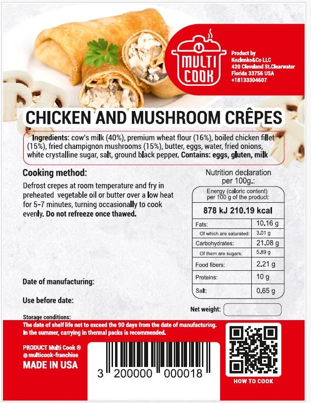 Frozen Savory Crepes with Chicken and Mushrooms