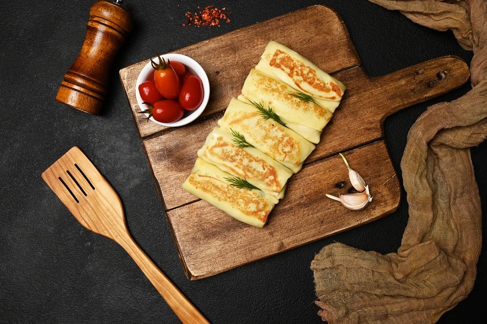 Thin, delicate crepes filled with a savory mixture of semi-fat boiled pork, pork fat, and fried onions. A traditional, satisfying meal that is quick to prepare.