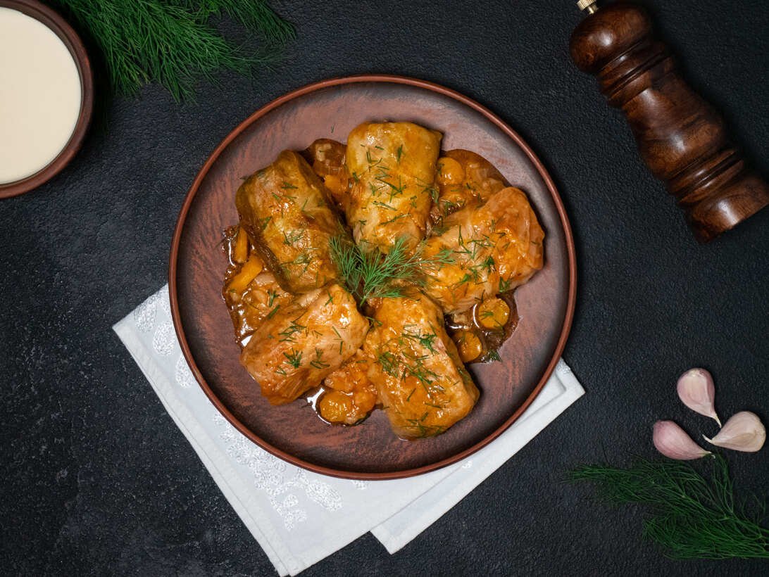 Traditional, hearty cabbage rolls stuffed with a savory filling of semi-fat pork, rice, fried onions, and carrots. Perfect for slow simmering in a rich sauce.