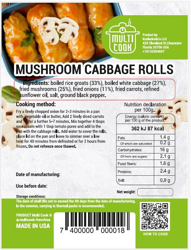 Mushroom Cabbage Rolls Frozen
