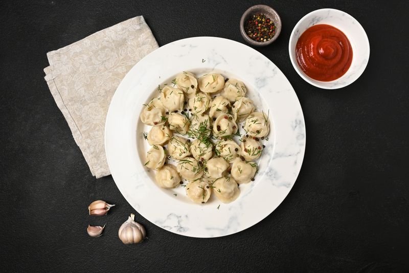 - Remove the cooked pelmeni from the water and serve immediately, topping with butter or sour cream.