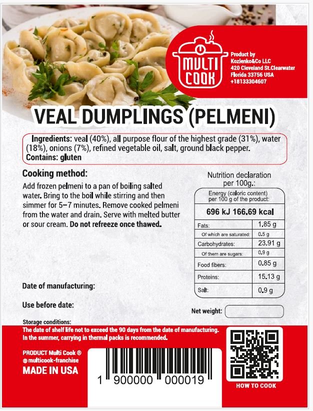 Classic Russian-style dumplings filled with high-grade deboned veal and seasoned with onion and black pepper. Quick and easy to boil for a satisfying meal.